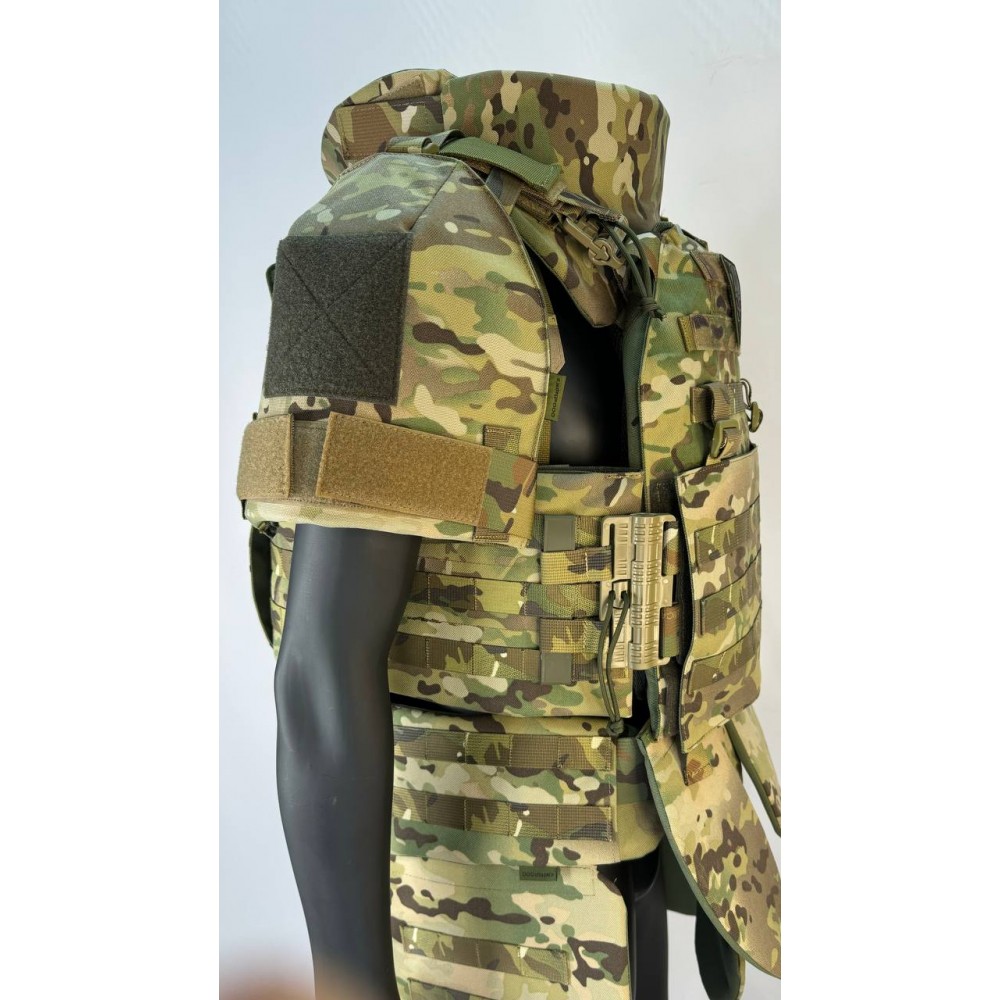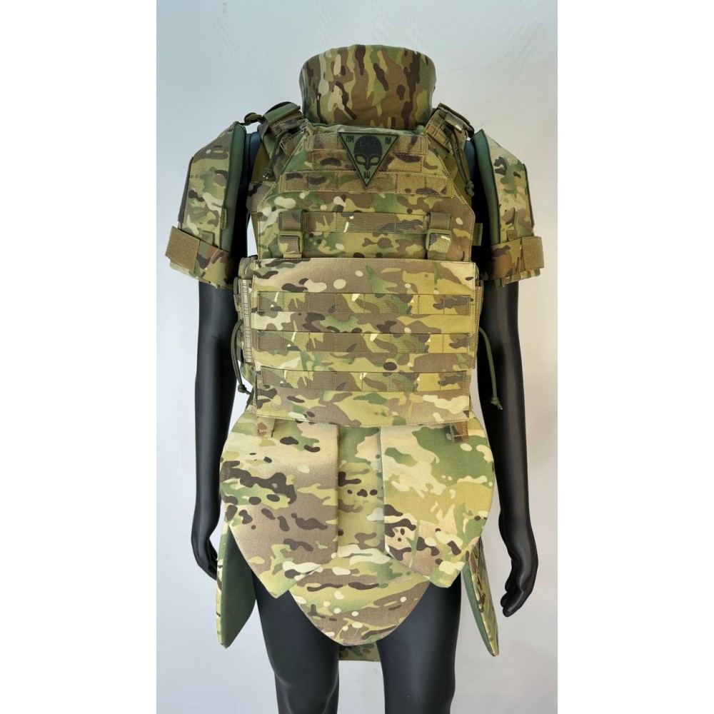 - Передняя бронепластина и задняя (спина): керамическая пластина из оксида алюминия + сверхвысокомолекулярный полиэтилен, размер 24х250х300мм