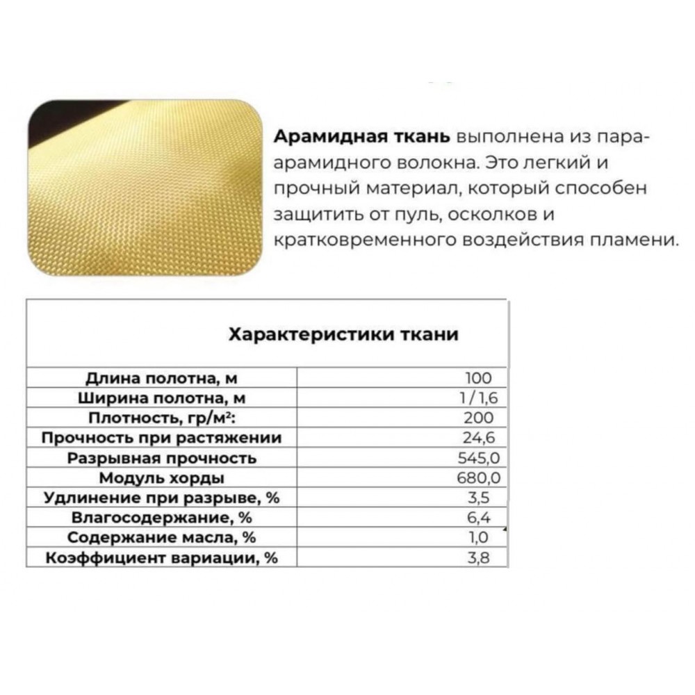 Кевларная арамидная ткань обладает выдающимися механическими характеристиками, включая высокую прочность и стойкость к разрыву. Она также хорошо сопротивляется воздействию воды и ультрафиолетового излучения, что делает ее идеальным материалом для использования в различных условиях.
