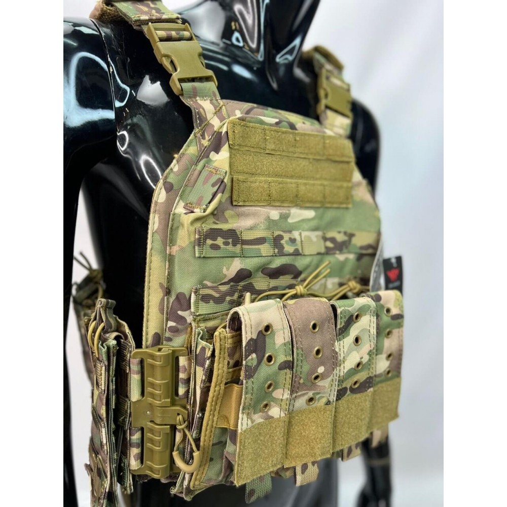 Множество карманов и подсумков: Жилет имеет обширное количество карманов, подсумков и молле-поверхности для размещения и организации снаряжения, патронов, аптечек и других необходимых предметов. Это обеспечивает легкий доступ к снаряжению в самый критический момент.